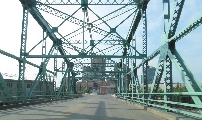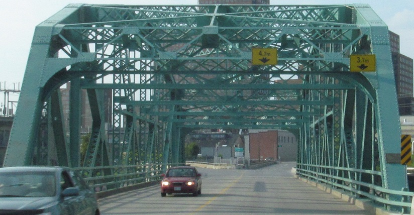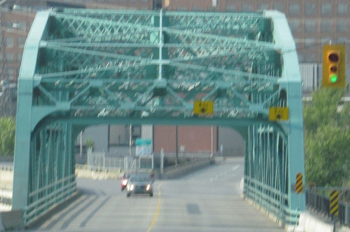 Booth St. SB across the Chaudière Bridge, entering Ottawa and Ontario from Rue Eddy in Gatineau, Québec.