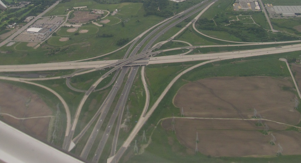 While we're at the airport, here's a landing view of the Highway 409 terminal interchange at Airport Rd.