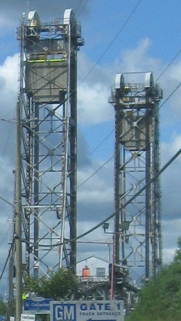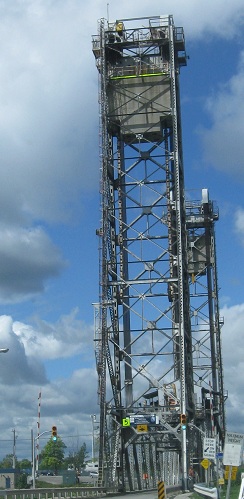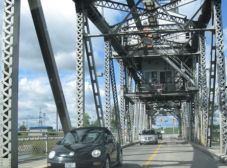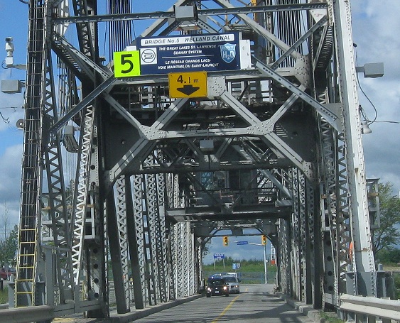 WB across the Welland Canal. There are giant wheels above the incredibly tall lift spans to get the roadway high enough for any ship that can clear the QEW's Garden City Skyway bridge (the only fixed bridge across the canal).
