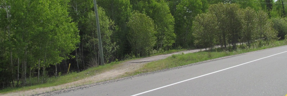 Several stretches of old alignment wind around the newer, straighter road as I travel east to the eastern Highway 17/17A junction. You can see the old road continue straight ahead as Highway 17 now bends left in the last two alignment photos. The one open stretch is accessed from Longbow Lake Rd.