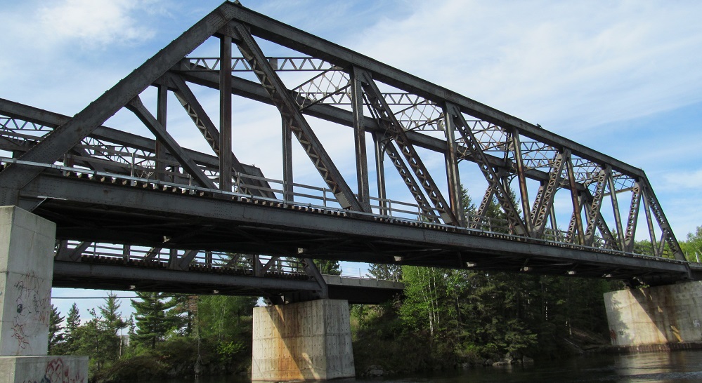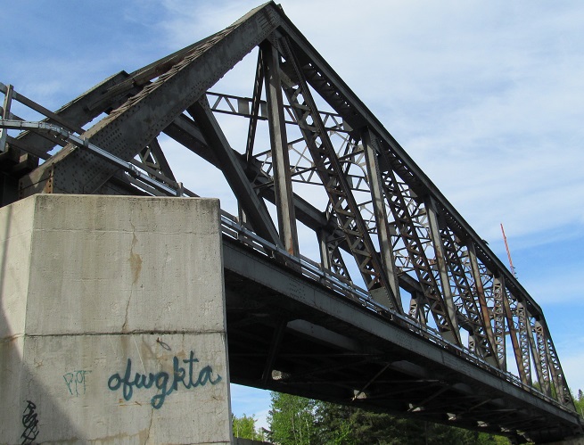 Starting where the western page left off, at McLeod Park in western Kenora. That page looked south at TCH 17, while this page looks north at the twin Canadian Pacific Keewatin Subdivision bridges over the Rideout Bay inlet from Lake of the Woods.