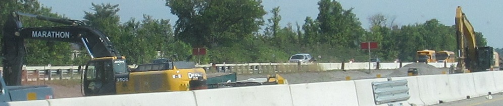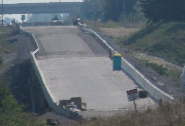 After a brief completed section of dual carriageway, now the EB side is under construction in August 2012.