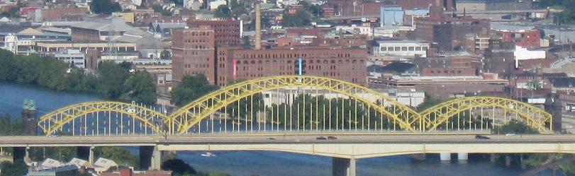 The Hulton Bridge southbound, way up in Oakmont but the next bridge east from the 62nd St. and Highland Park bridges (linked below on the PA 8 page).