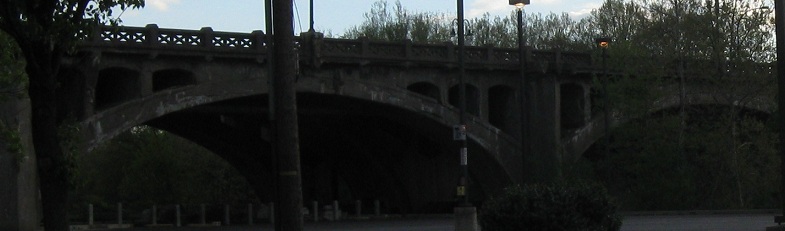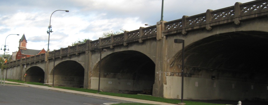 River Rd. SB under the Penn St./Penn Ave./Business US 422 bridge over the Schuylkill River, and looking east and west.