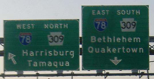 SB as the road becomes PA 29. Note the clearance sign in the background of the last photo - 14'-1" is very substandard for an Interstate overpass, but reflects the 1950's construction of PA 309.