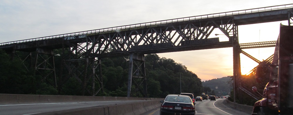 SB after the Fort Pitt Tunnel under a couple of different old Norfolk & Western overpasses. You can see that the first photo is on what's now I-376 (Exit 69) instead of I-279 (Exit 5).