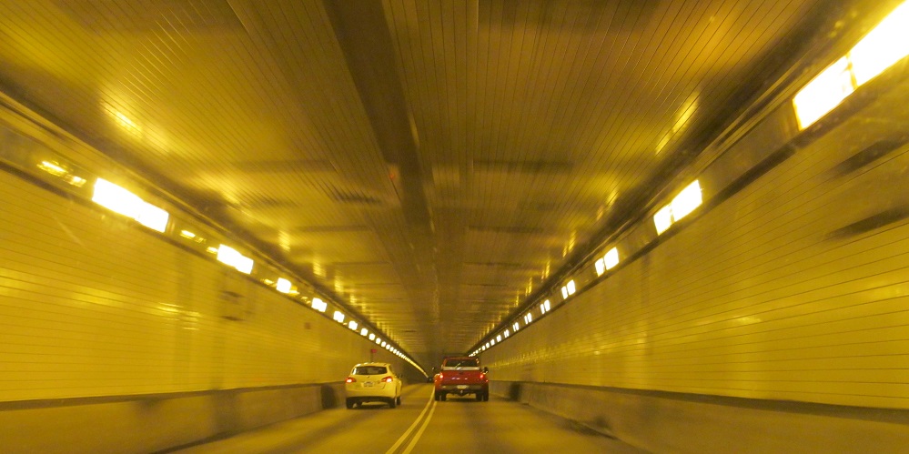 SB across the Fort Pitt Bridge into the Fort Pitt Tunnel. You can see the SB roadway equalizing elevation with the NB roadway through the photos. Plus you get a video through the tunnel (click on the last thing, which isn't a photo).