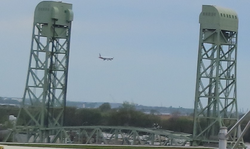 To the left (east), there's another interesting bridge, one that retains its greenness, the 26th St. bridge over the Navy Yard inlet.