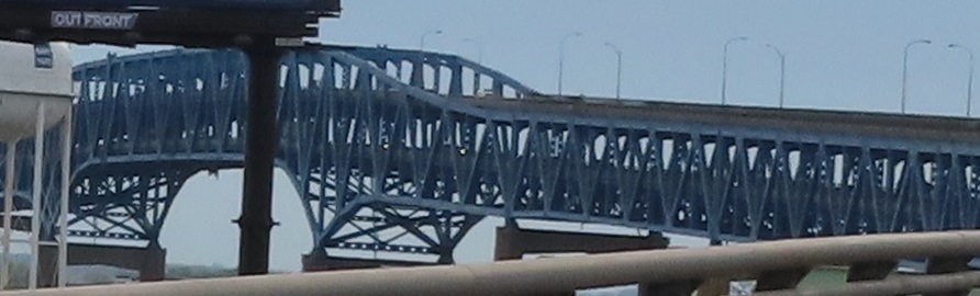 Northbound onto and over the lower level of the bridge.