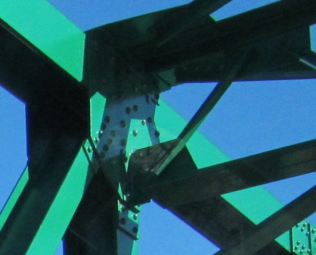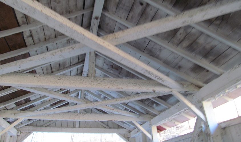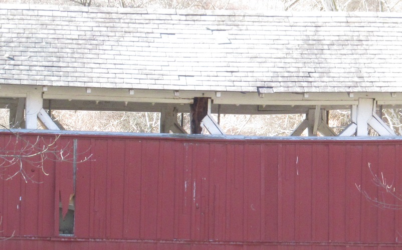 Looking west from the parallel pedestrian bridge, you can see some of why this bridge had to be closed. This part of the roof was approaching collapse! The underpinnings remained solid, though.