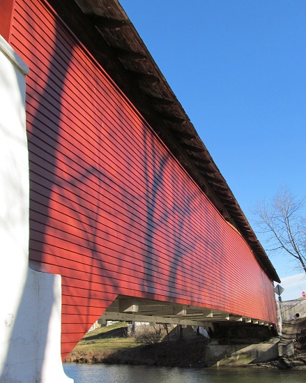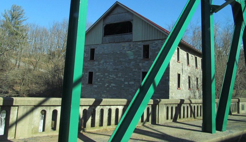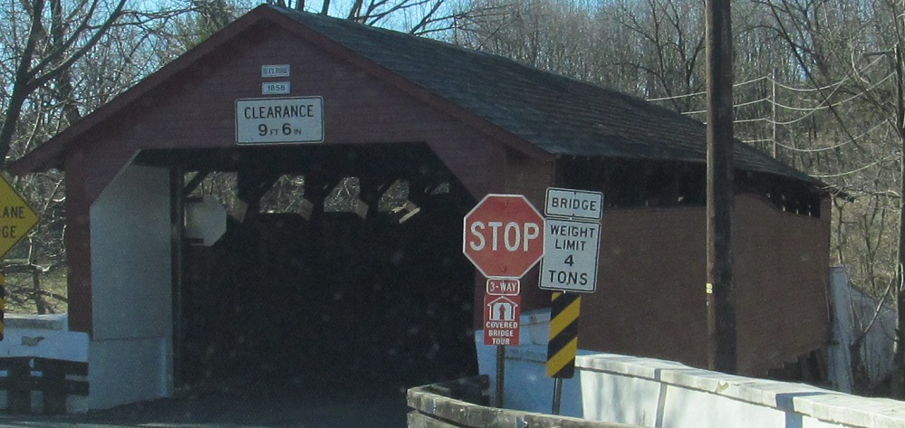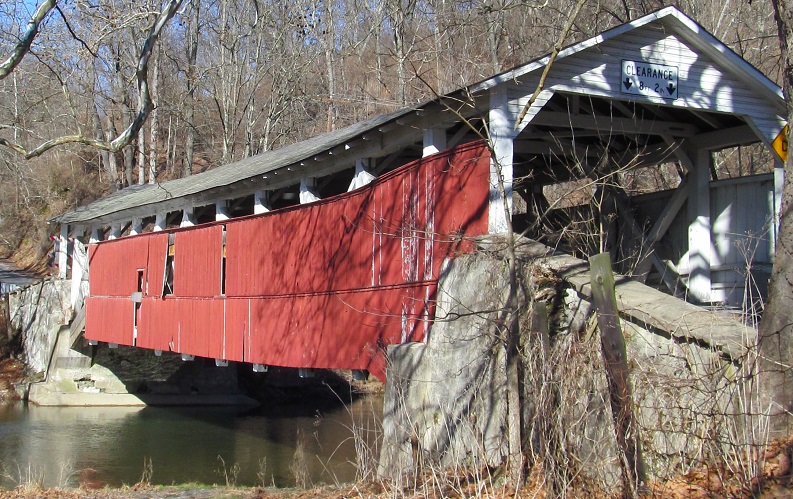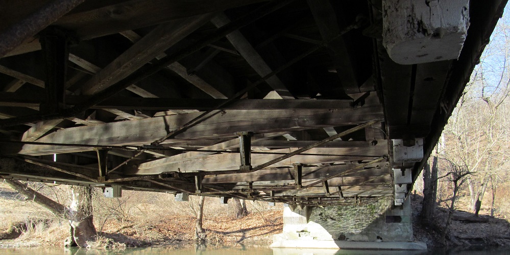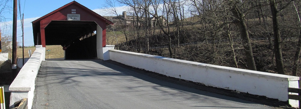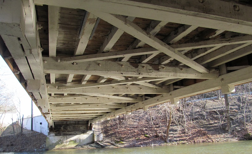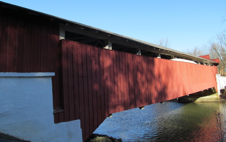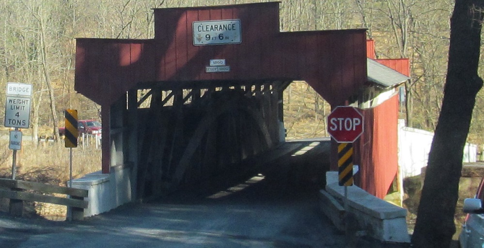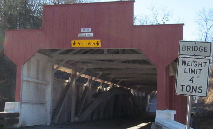 Jordan Rd. curves north and then turns into Old Packhouse Rd. to head east across Geiger's Bridge, still across Jordan Creek. As you can see, this unit dates to 1860.