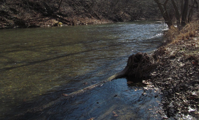 Looking south along Jordan Creek, looking east at the bridge portal.