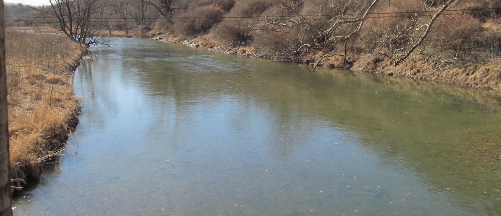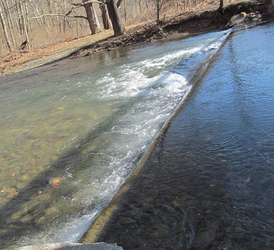 The creek is dammed to the east, flowing toward the other bridges you saw on this and the South Whitehall page.