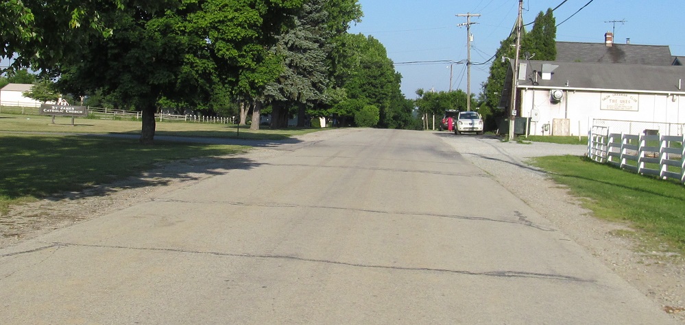 Heading east on Bowman Rd., one of the most interesting of the old US 22 alignments. The first photo is at the St. James Parish parking lot.
