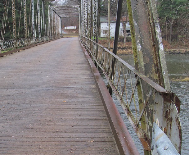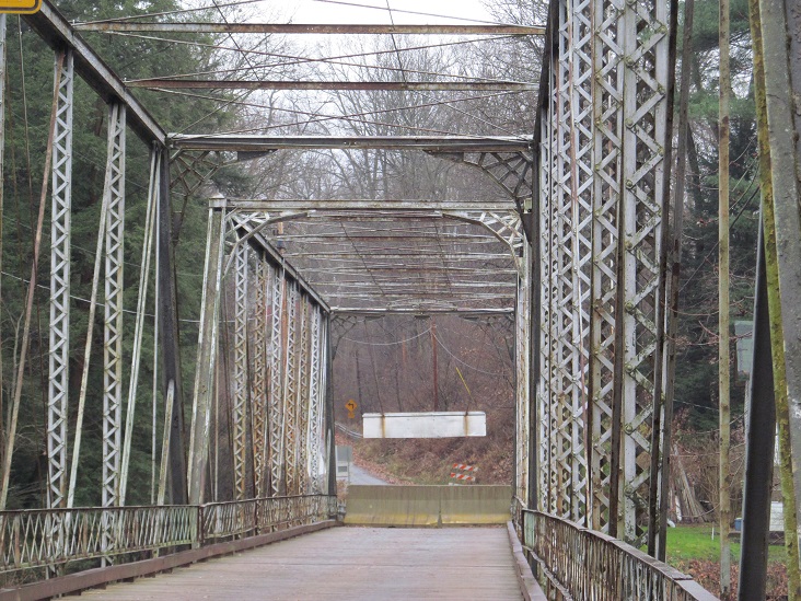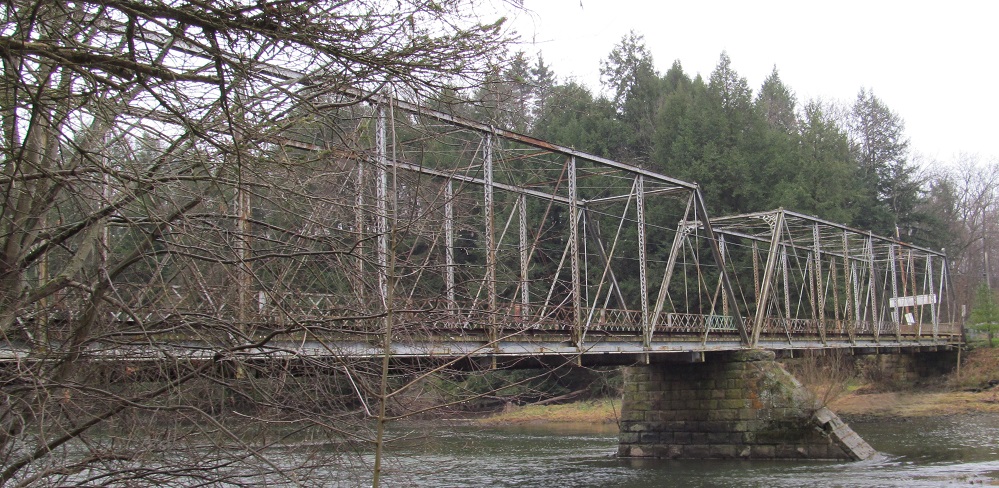 The Carlton Bridge was just south of old US 322 in Carlton. Built in 1888, it was the last multi-span truss in Pennsylvania built by the Columbia Bridge Works and reportedly the last original through truss in the western half of the state. Sadly, it was closed due to deterioration and replaced shortly after I visited in 2013, but there's a chance the trusses were saved in storage to be restored and brought out another day. These photos look south from the north shore of French Creek.