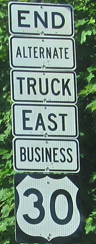 I had to head south in my photos to save the best for last. The first photo is infamous for the number of banners stuck on it. When you dissect it, Business US 30 has a weight-limited bridge in Downingtown, so you need the "Business" banner to distinguish it from regular US 30 and the "Truck" banner because it's not the main route. You need the "END" and the "EAST" to define what's going on, so really, the "Alternate" is the only unnecessary part. It just looks like way too much even without that.