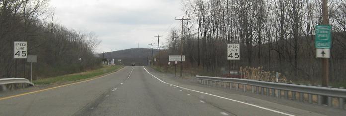 Sullivan Trail comes in from the right and meets old PA 115, Knox Ave., heading north from Easton. Why wasn't 115 on Sullivan Trail? It crossed a mountain ridge in a rather curvy way, and Knox Ave., built later, did it straighter. So really, the road on the right is old old 115.