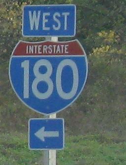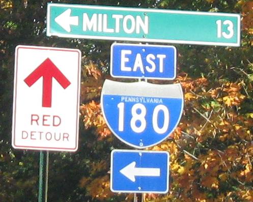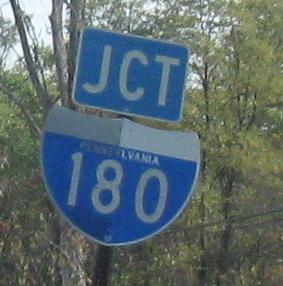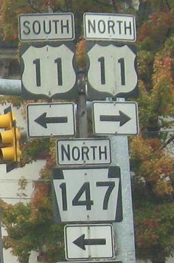 Continuing north of the current end of PA 147 on the original route, Susquehanna Trail, NB past a new, narrow shield. What is now I-180 was built as the PA 147 freeway, taking the route away from the Susquehanna Trail. The many keystones on the Trail are testament to the former route designation.