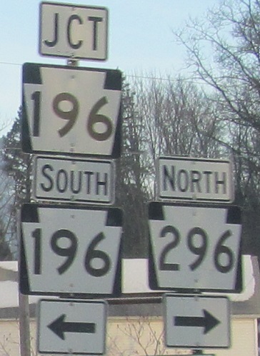 For whatever reason, PA 196 ends at PA 296, when it could very easily have stayed with PA 191 a little longer and absorbed the entirety of 296, but that would deprive you of the extra JCT shield. PA 296 inherits the Easton Tpk. name from here north.