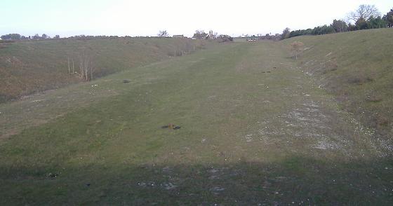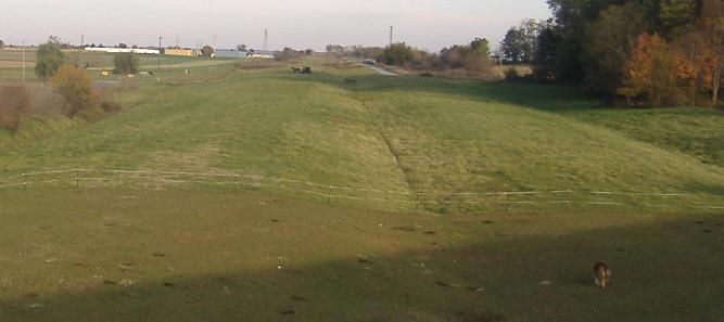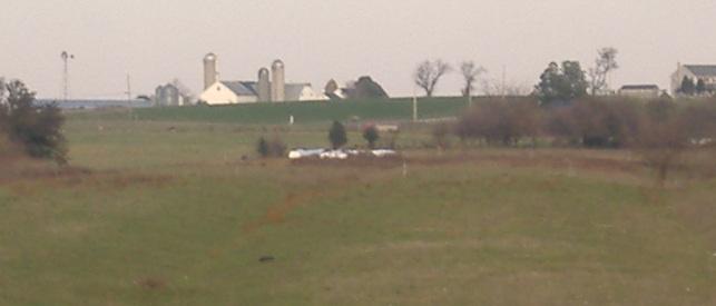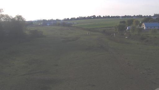 Looking west from the Willow Road overpass. The reason the ROW looks like it ends is because it's blocked by Millcross Road, after which there's an actively farmed field separating it from the US 30 interchange.
