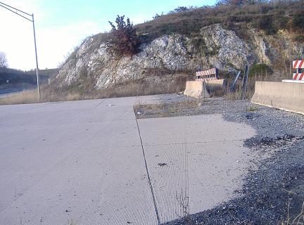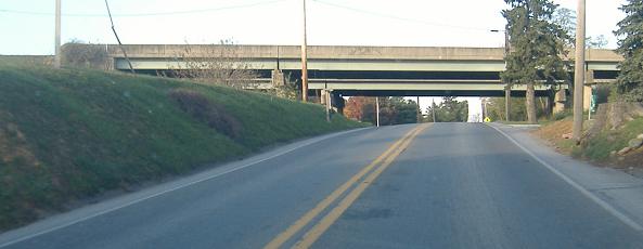 Perspectives of the WB on-/off- ramp combo, which does its best to pretend it was meant to be a continuation of the PA 23 expressway. Of course, that doesn't explain the concrete stubs sitting in a rock cut.
