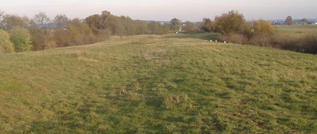 Now facing east from Willow Rd. The ROW bends to the right through the low trees.