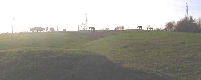 Looking west from the western side of the overpasses. All was well in the first photo, but as you can see in the second photo, the animals noticed me.