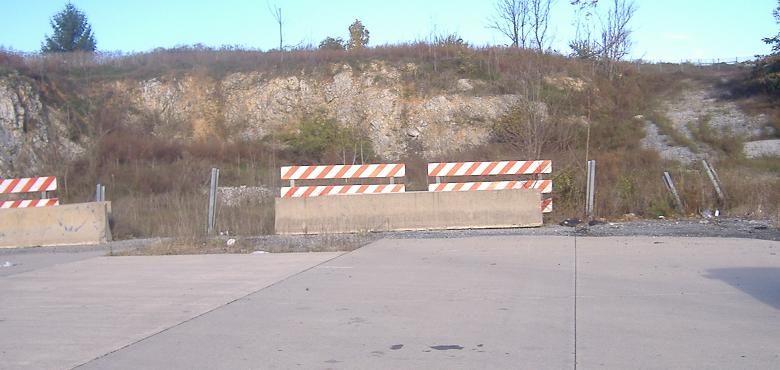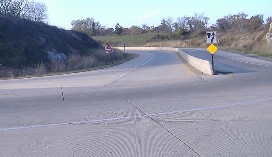 The eastern end of the four-lane expressway that was built coming out of Lancaster. Oddly, it has only a diamond interchange at US 30, meaning that while the freeway would begin basically at these barriers, there would be no freeway-freeway connection at US 30. This also unfortunately bolsters the argument to make the new road something less than a full freeway. (It's unfortunate from a highway enthusiast's perspective. Feel free to disagree.)