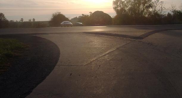 Across PA 772 (following my shadow) to the Goat Path WB offramp, which is graded out of the grass in the fourth photo onto a PennDOT access road (which I will cover shortly - no peeking), then out onto the original 1960's concrete.