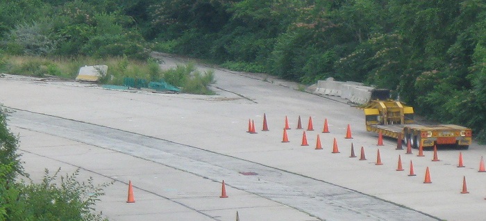 Looking east from the overpass through the CDL area, with a shot of the stub that would have been the EB-NB ramp, and then looking west at the end of pavement.