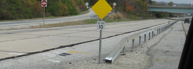It was CDL (Commercial Drivers License) testing. So we couldn't go any farther than this. It's okay, because the freeway ends just beyond the Valley Forge Rd. overpass. Valley Forge Rd. is currently PA 23 all the way out to Phoenixville, where there was to have been another freeway spur from US 422, with several turns along the way.