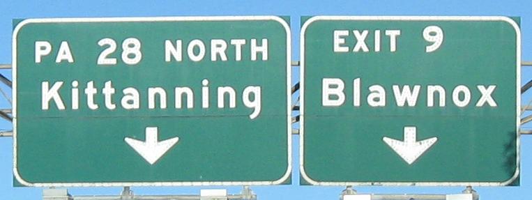 The left and right sides of the Highland Park Bridge interchange, NB at PA 28. Here you see both belts signed from the bridge.