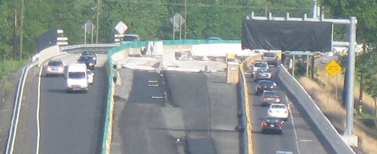 As seen on the June 19, 2010 Southeast PA Road Meet, the Norristown Rd. interchange is under construction to add ramps on the north side. The first photo is of the (now current) NB onramp and the other two are of the SB offramp.