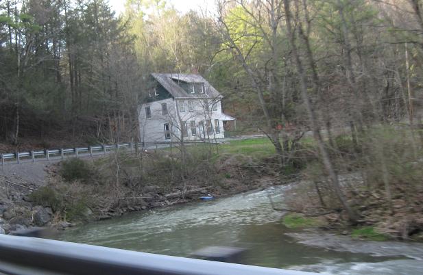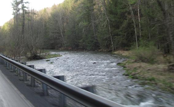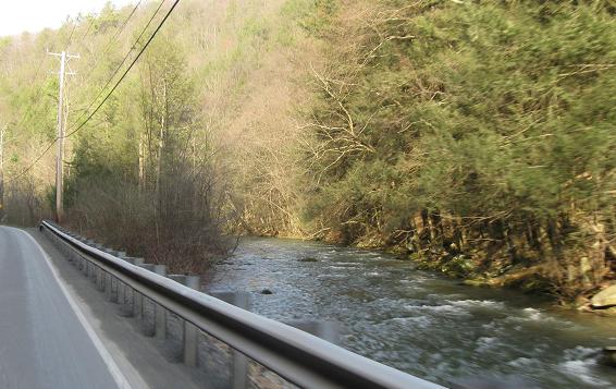 Looking back south. PA 171 stays on the west side of the creek through Millheim Narrows.