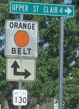 Greentree Rd. EB, which carries the Yellow Belt (think rainbow - it's the next closest to Pittsburgh from Orange), at Old Washington Pike. In this area, PA 50 follows (modern) Washington Pike, so I can put these photos here.