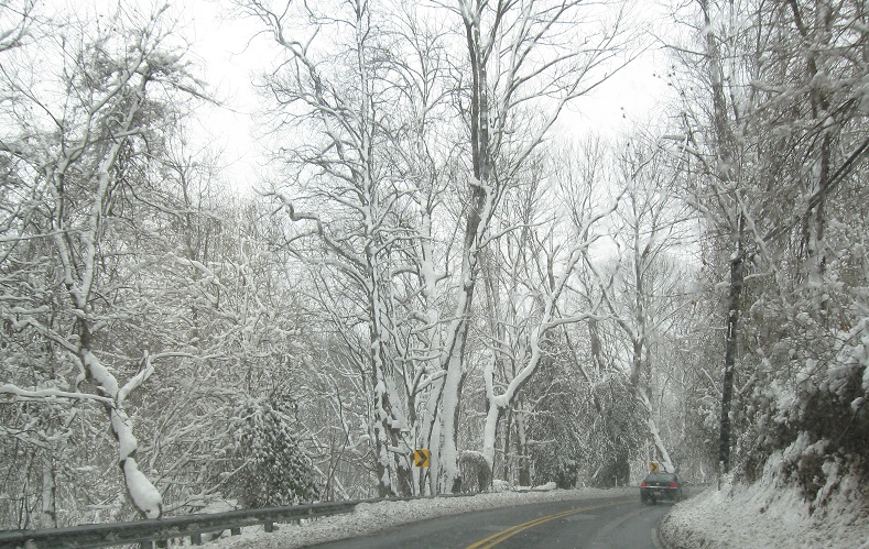 SB through the snow to the old Brandywine Creek crossing outside West Chester.