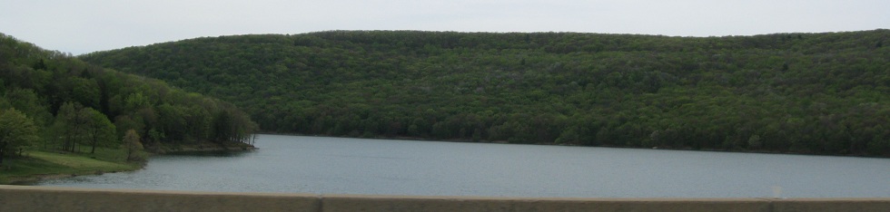 After a few miles, I come to the dammed (spelled that way, yes) western end of the reservoir. All of my captions have ended with the same word.