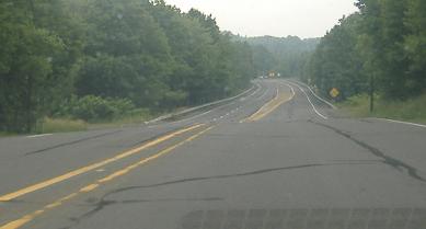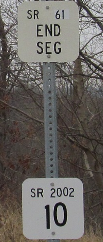 At the south and north ends (respectively) of that abandoned roadway, PA 61 stops using its semi-temporary alignment and returns to being 61. PA SR 2002 just happened to be perfectly situated for the task (after being improved to the south to meet 61 again), and since the majority of traffic to once-bustling Centralia is tourists like myself, two lanes can do the job instead of four. The fact that SR 2002 still exists and hasn't been taken over by 61 hints that should the coal fires eventually go out and the roadway become safe again, PA 61 may be repaired to its original four-lane glory.