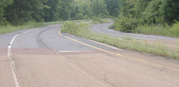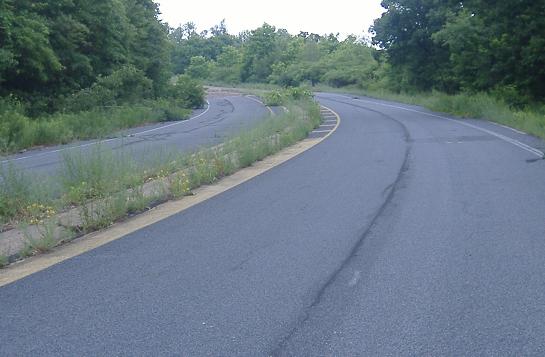 Back around the curve to the rolling hills of the straightaway. Since this is a downhill, I just cruised on my bike and thus chose the northbound, non-cracked lanes.