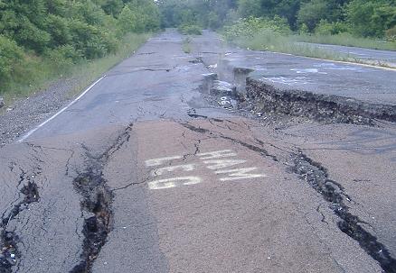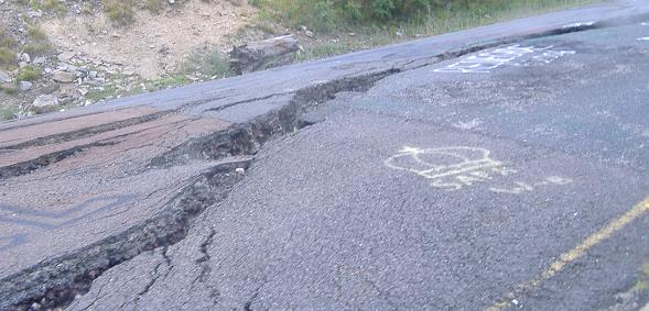 Getting closer to the ground so you can see just how far the shoulder has subsided relative to the centerline.