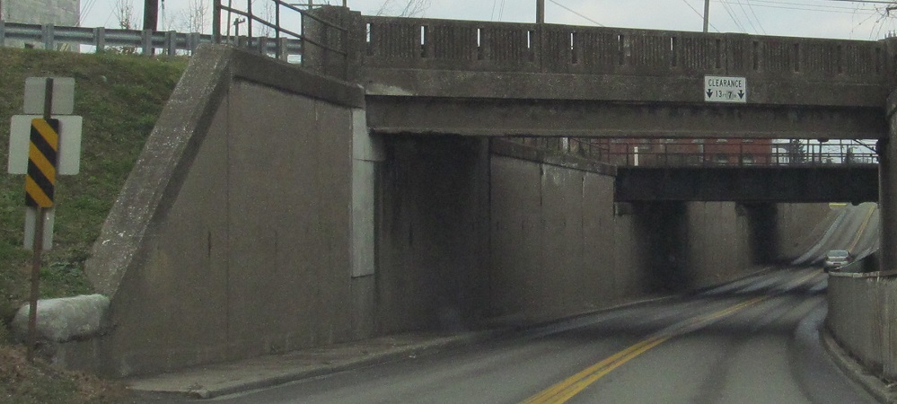 North of the PA 426 junction in North East, PA 89 first crosses under PA 426 and then the two sets of railroads it was paralleling. (PA 426 loops down from the railroad level to end at PA 89.) The two bridges together once carried 7 tracks and are now down to 2 each.