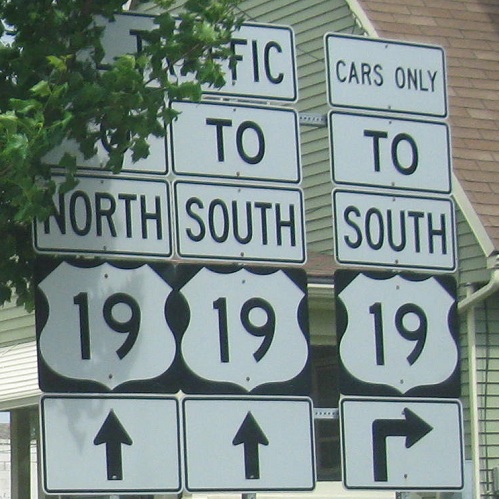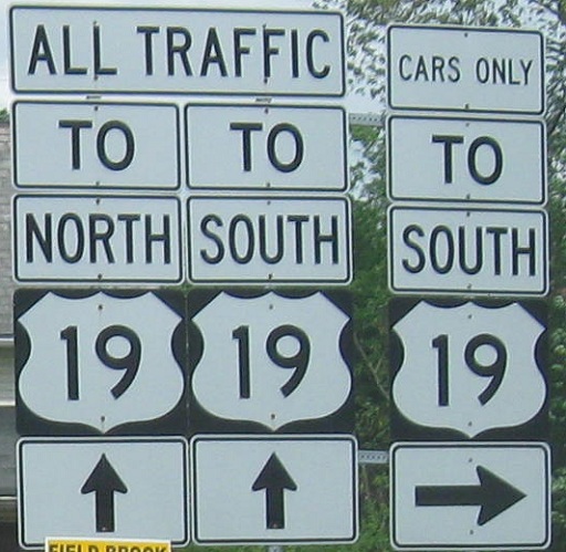 Wexford doesn't want truck traffic on residential Church Rd., so blame them for the fat shields. Church Rd. was originally part of US 19, but way back in the 1930s.