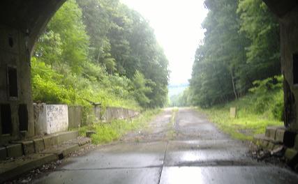 Emerging from the Ray's Hill Tunnel, and slowly widening from two undivided lanes into four divided lanes. You can see the original concrete pavement of the tunnel approach underlying the asphalt; as more and more time passes, the asphalt of the entire abandoned Turnpike will gradually be broken apart, and more of the original pavement will show through. The fact that it's already appearing here tells you how much traffic wore on the approach - the rigors of combining two lanes of traffic with a lot of slow trucks will do that.