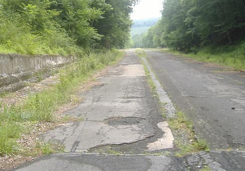 All the way down the steepest hill on the abandoned Turnpike in the westbound lanes, because as bad as they may sometimes look in the first eight photos, the eastbound side as seen in the last two photos is clearly very much worse.
