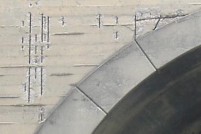 Continuing the striping test from the second page, which in the first photo goes right over the original double-white tunnel approach striping. In the second photo, you can see the shoulder stripe slowly converging from the right.