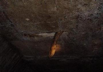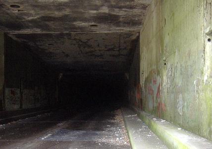 Into the tunnel, with holes overhead where recessed lights once hung, and rectangular openings for ventilation. I was able to explore more of this tunnel, as linked at the bottom of this page, and by following that link (it begins with "Into") you can see the tops of the round and rectangular holes. Continuing into the tunnel, I give you a flash- and flashlight-lit center stripe photo, and then a mysterious spaceworm trying to kill you. I guess the rectangular holes are space portals to Saturn (catch the '80's movie reference?). No, really, please tell me what this is, and it better not be a dead body. Or an undead body.