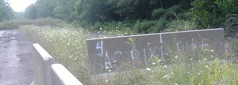 Slowly making my way east toward the end of the Pike2Bike trail. These patches were applied toward the end of the life of this part of the Turnpike, and have held up horribly.