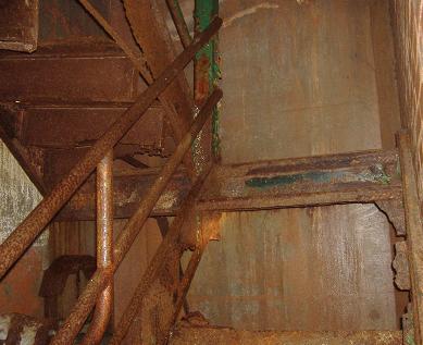 There's not much to see in this room, and you can't get to any other rooms, because, well, even if you're a good climber, would you trust rusty stairs with your weight if half of them are already missing? You'd also be reluctant to crawl through a door with jagged pieces of glass, so it's a good thing the door is open. All you see in that little second room is that light and those pipes, anyway.