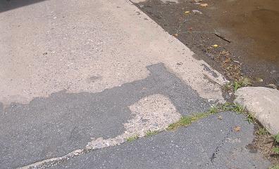 Back outside, with a photo of the asphalt of the eastbound tunnel approach (or, technically, departure, I suppose), with the concrete curb median coming right up to the concrete tunnel pavement. Under the asphalt is more concrete.