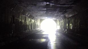 This is why lights and helmets are required. What you can't see certainly can hurt you (I'm referring to the fist-size concrete chunks on either side, which could only have come from the ceiling).